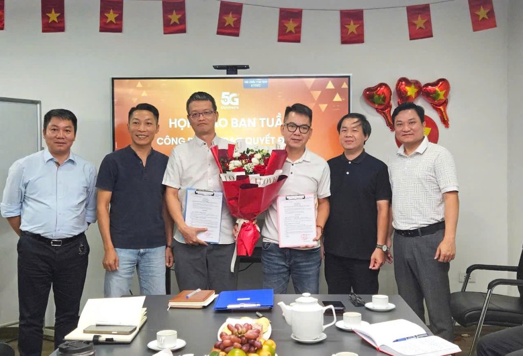 Ban lãnh đạo Công ty Cổ phần Công nghệ và Truyền thông Đa phương tiện 5G vừa tiến hành trao quyết định bổ nhiệm vị trí Phó Giám đốc phụ trách sản xuất nội dung cho 2 anh Hoàng Trọng Hiếu và Trịnh Quốc Tuấn.